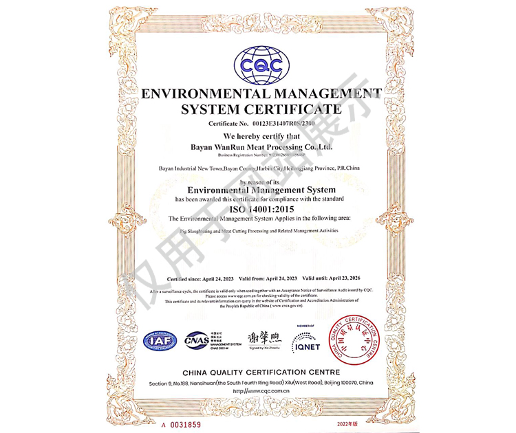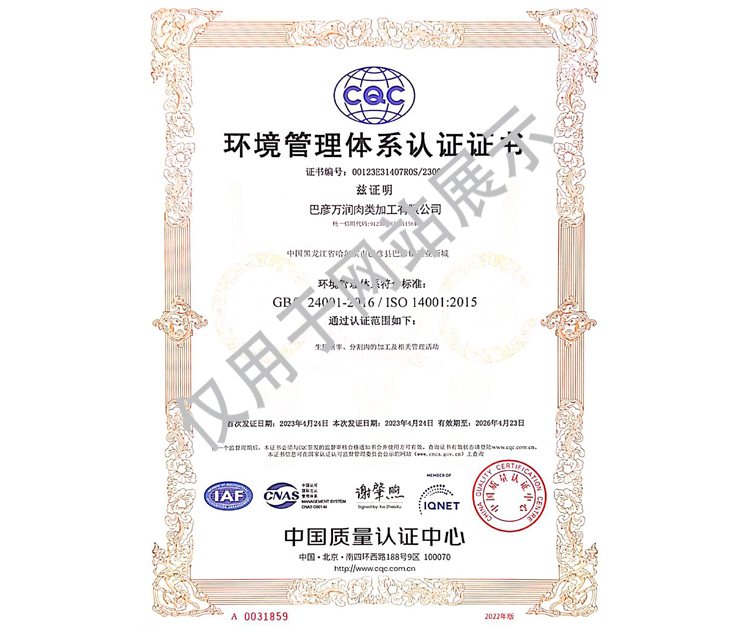 2016年公司通過了中國質量認證中心的質量管理體系(ISO9001)和食品安全管理體系(ISO22000)認證;2017年已取得國家進出口企業認證;是中國肉類協會會員單位,黑龍江省肉類協會副會長單位;2017年,公司產品經中國綠色食品發展中心審核,被認定為綠色食品A級產品;被省畜牧獸醫局確定為全國生豬屠宰標準化創建示范企業(全國僅6家)。2018年12月,被評定為市級農業產業化重點龍頭企業。2019年1月,被評定為省級農業產業化龍頭企業。